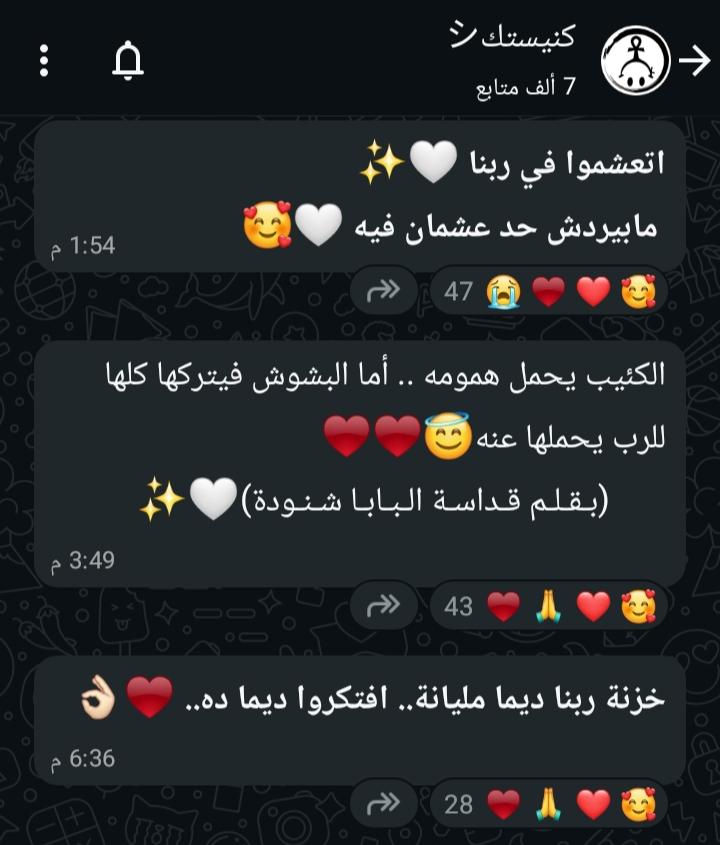 كنيستكシ WhatsApp Channel. "فَقَالَ لَهُ يَسُوعُ: «دَعِ الْمَوْتَى يَدْفِنُونَ مَوْتَاهُمْ، وَأَمَّا أَنْتَ فَاذْهَبْ وَنَادِ بِمَلَكُوتِ اللهِ»." (لو 9: 60) لينك البرامج اللي عاملينها حملهم هتستفاد كتير جدا🫶♥️ https://linktr.ee/knestk. 7K followers
